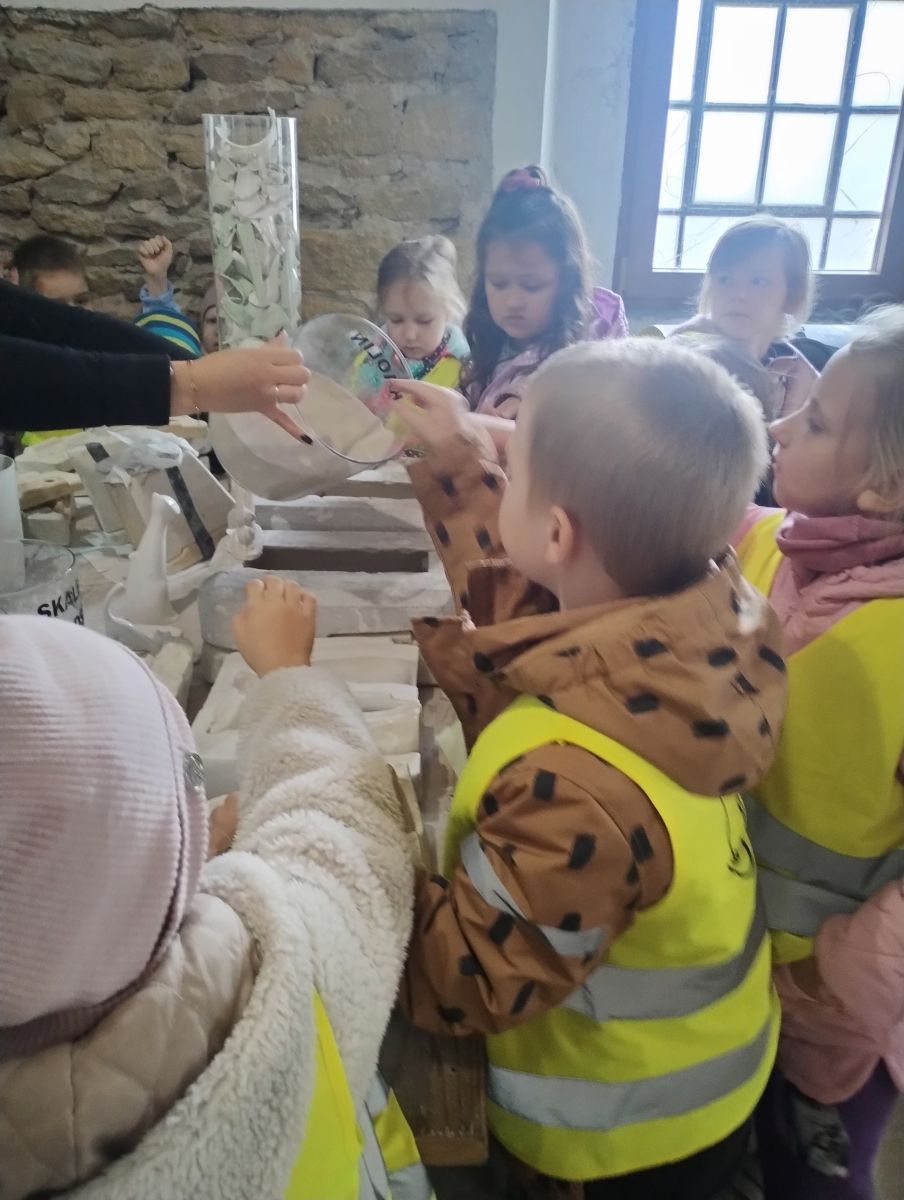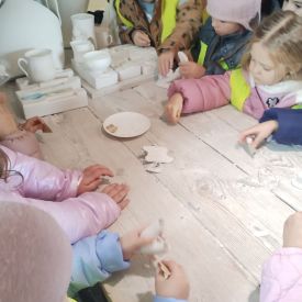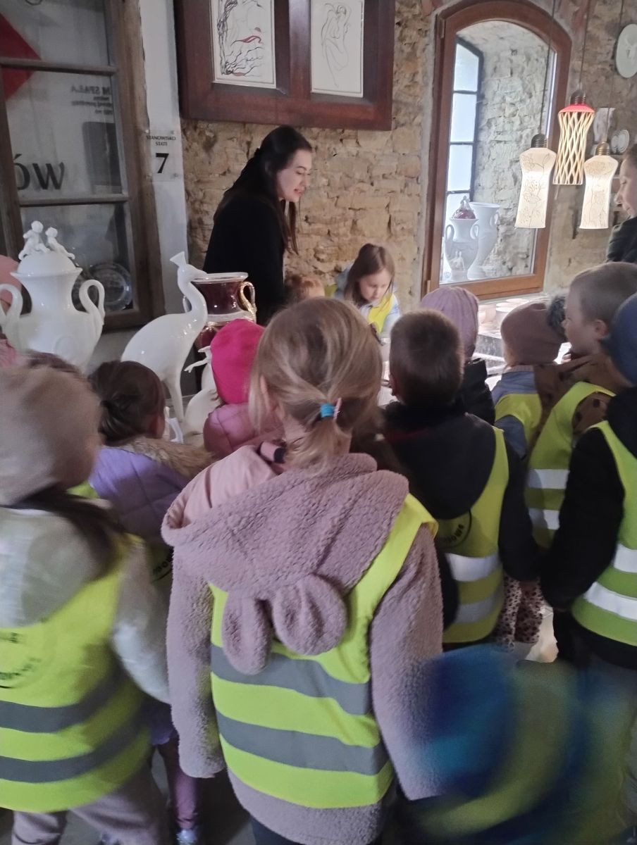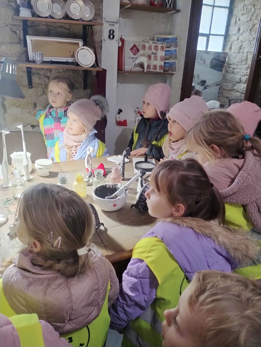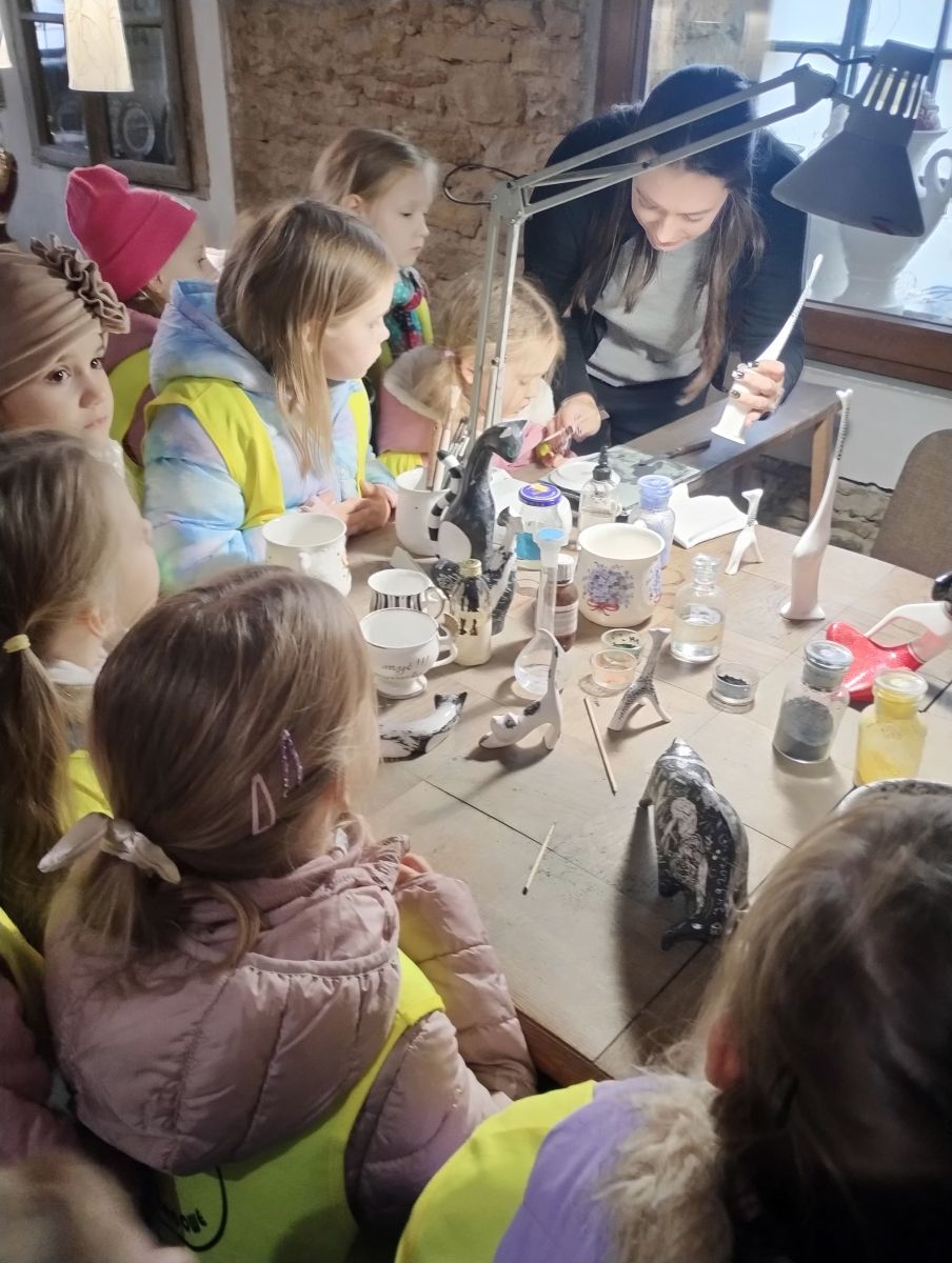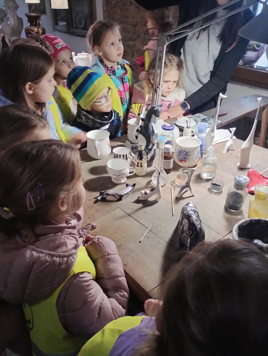 22 października 2025r. dzieci z grupy III i IV w ramach projektu "Dbając o wszechstronny rozwój dzieci - kierujemy przyszłość" odwiedziły Żywe Muzeum Porcelany w Ćmielowie. Przedszkolaki zwiedziły Muzeum, a także miały możliwość zobaczyć "na żywo" jak powstaje porcelana. Na przykładzie porcelanowej figurki kotka poznały wszystkie etapy produkcji porcelany. W czasie warsztatów każde dziecko wykonało własnoręcznie porcelanowa różyczkę, którą mogło zabrać na pamiątkę do domu.