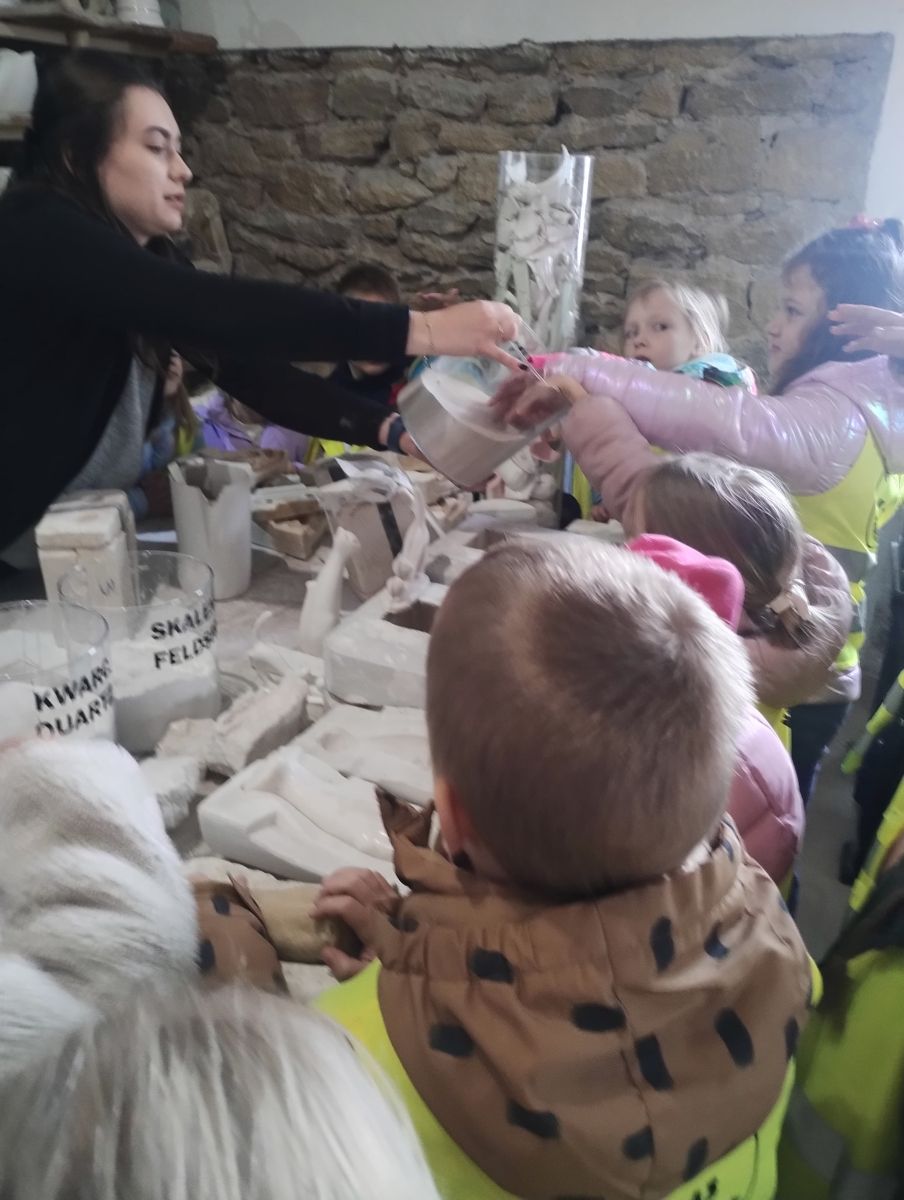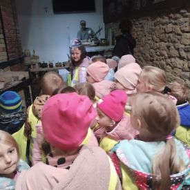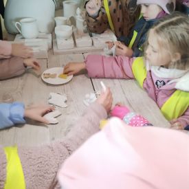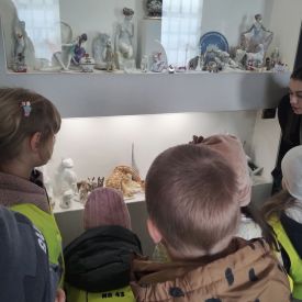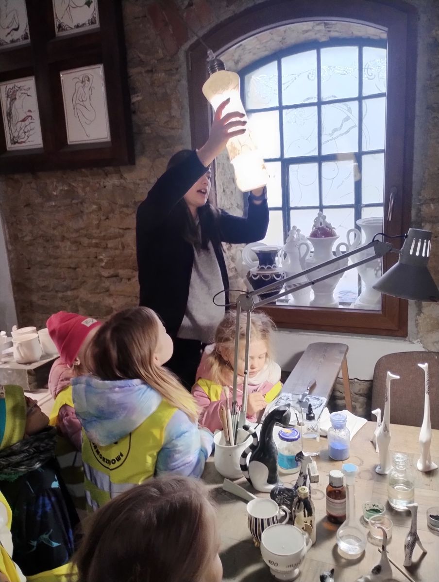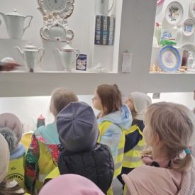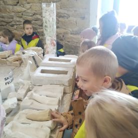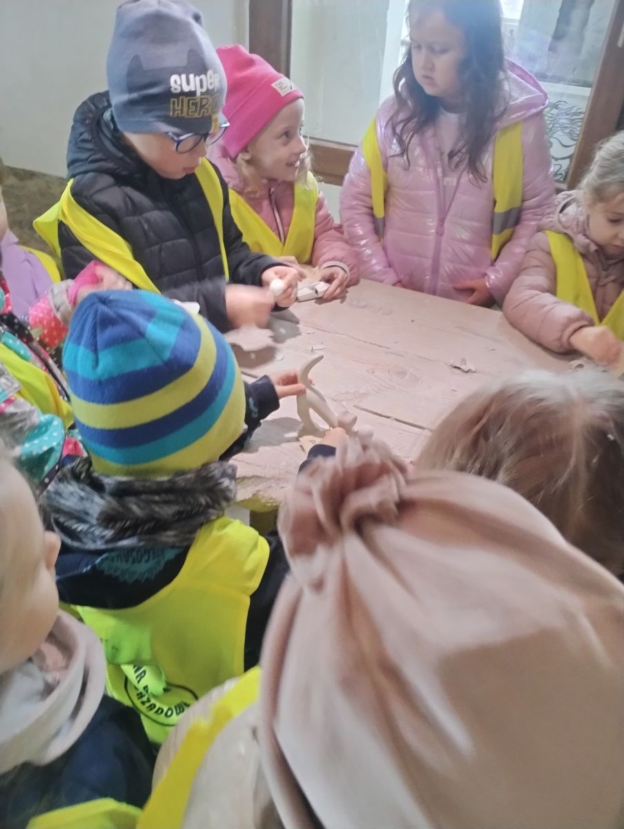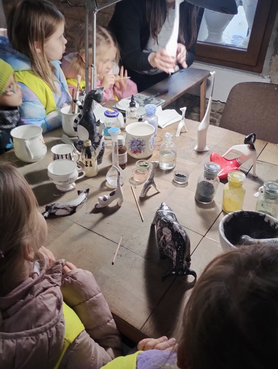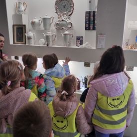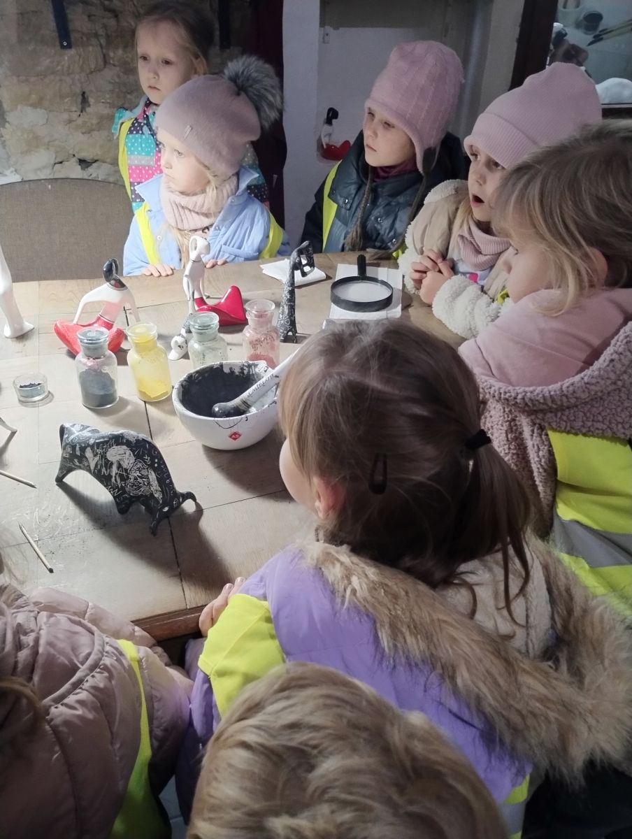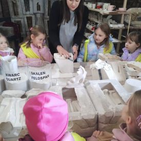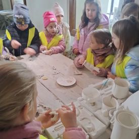 22 października 2025r. dzieci z grupy III i IV w ramach projektu "Dbając o wszechstronny rozwój dzieci - kierujemy przyszłość" odwiedziły Żywe Muzeum Porcelany w Ćmielowie. Przedszkolaki zwiedziły Muzeum, a także miały możliwość zobaczyć "na żywo" jak powstaje porcelana. Na przykładzie porcelanowej figurki kotka poznały wszystkie etapy produkcji porcelany. W czasie warsztatów każde dziecko wykonało własnoręcznie porcelanowa różyczkę, którą mogło zabrać na pamiątkę do domu.