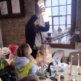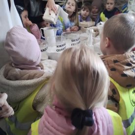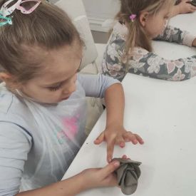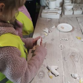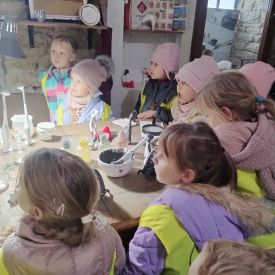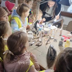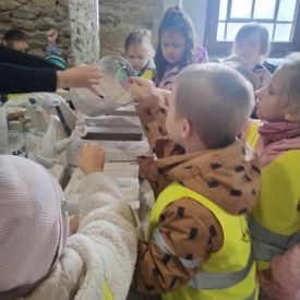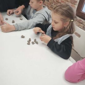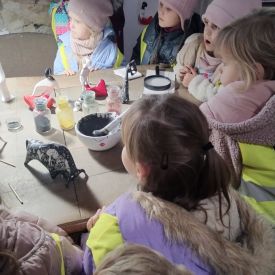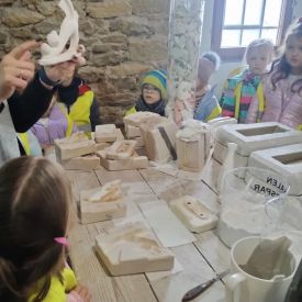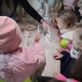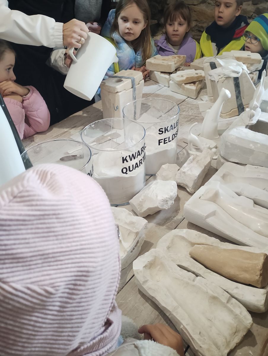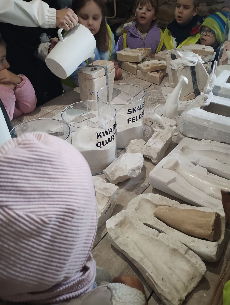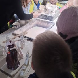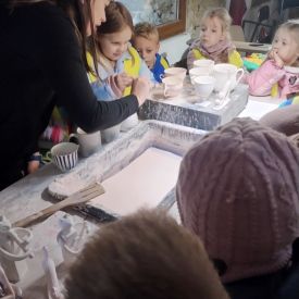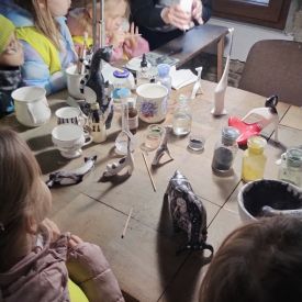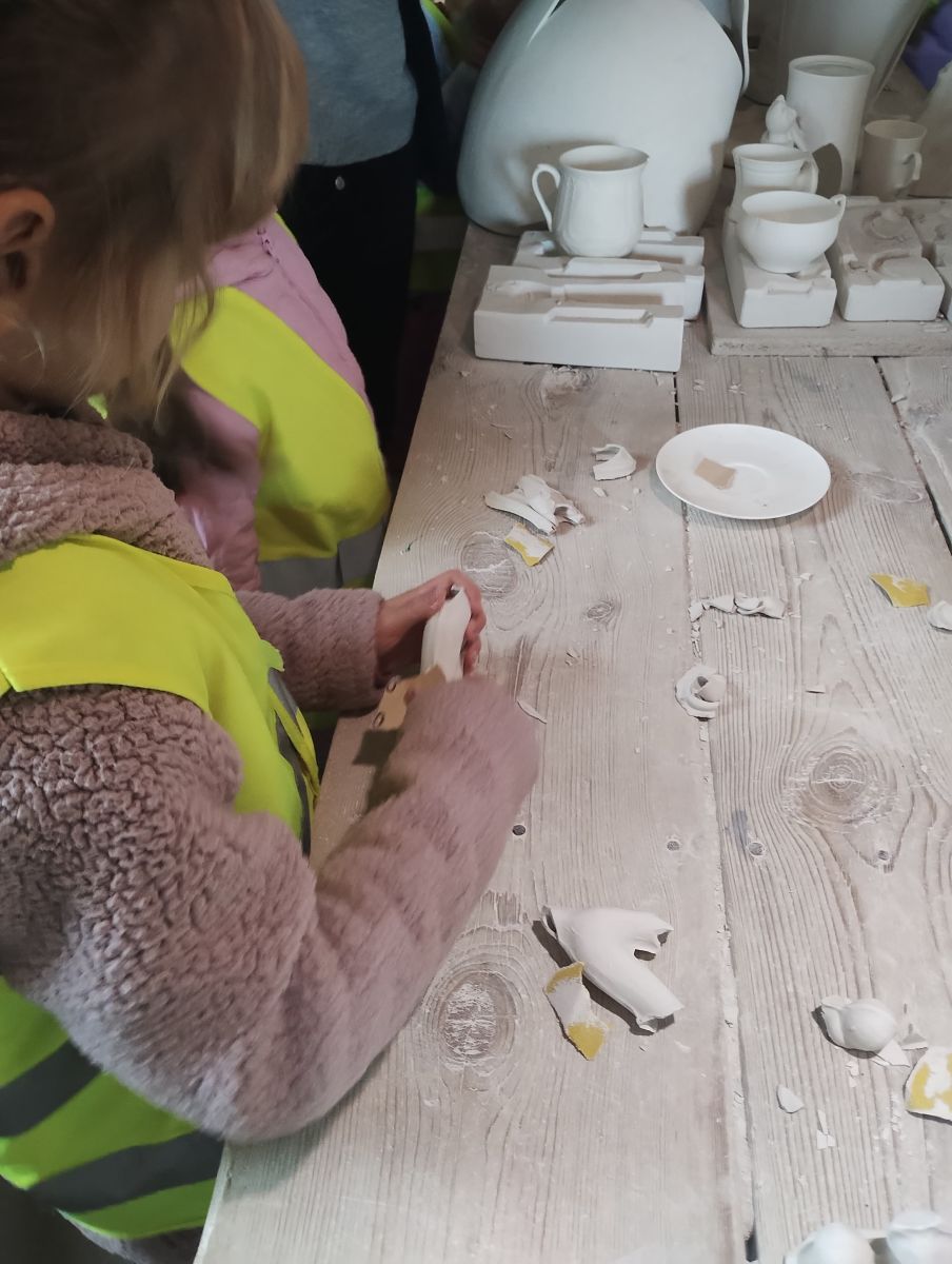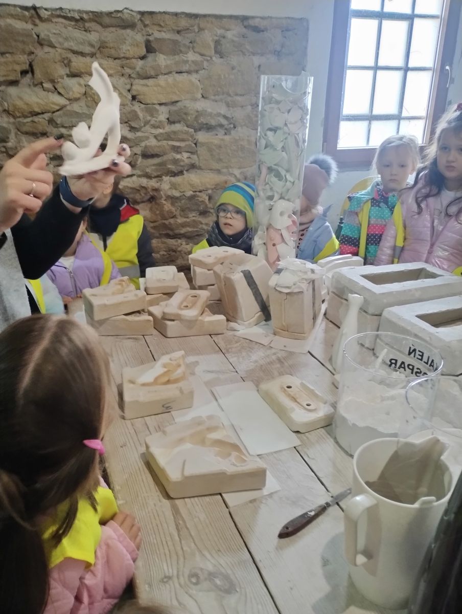 22 października 2025r. dzieci z grupy III i IV w ramach projektu "Dbając o wszechstronny rozwój dzieci - kierujemy przyszłość" odwiedziły Żywe Muzeum Porcelany w Ćmielowie. Przedszkolaki zwiedziły Muzeum, a także miały możliwość zobaczyć "na żywo" jak powstaje porcelana. Na przykładzie porcelanowej figurki kotka poznały wszystkie etapy produkcji porcelany. W czasie warsztatów każde dziecko wykonało własnoręcznie porcelanowa różyczkę, którą mogło zabrać na pamiątkę do domu.