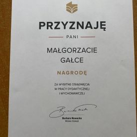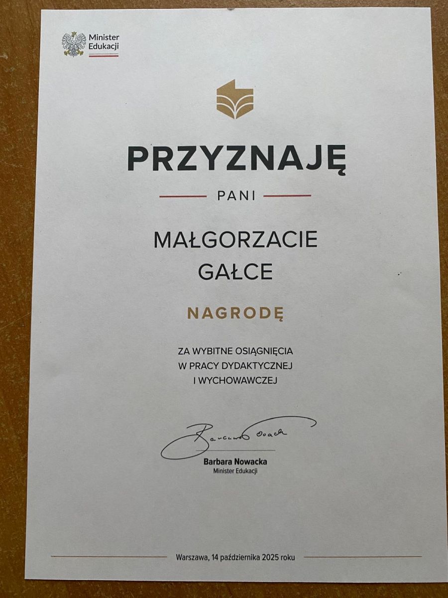Nasza Pani Dyrektor odebrała nagrodę Ministra Edukacji. Serdecznie gratulujemy! Ta nagroda jest jednocześnie potwierdzeniem w jak dobrych rękach znajdują się Wasze dzieci 😊