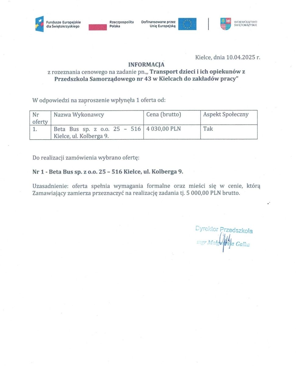 Beneficjent: Gmina Kielce/Przedszkole Samorządowe nr 43 w Kielcach